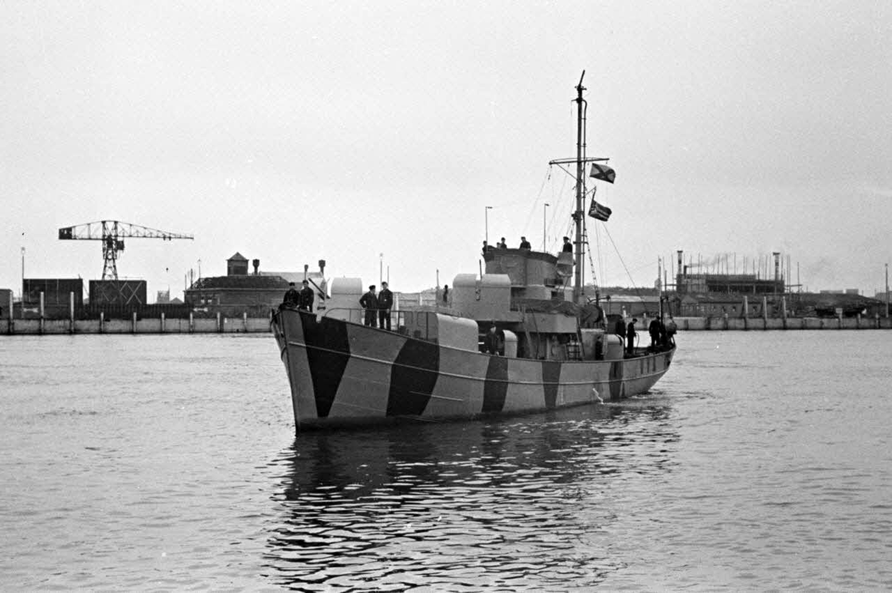 Le dragueur de mines allemand (Sperrbrecher) récemment modifié en bâtiment lance-flammes ou bateau-p