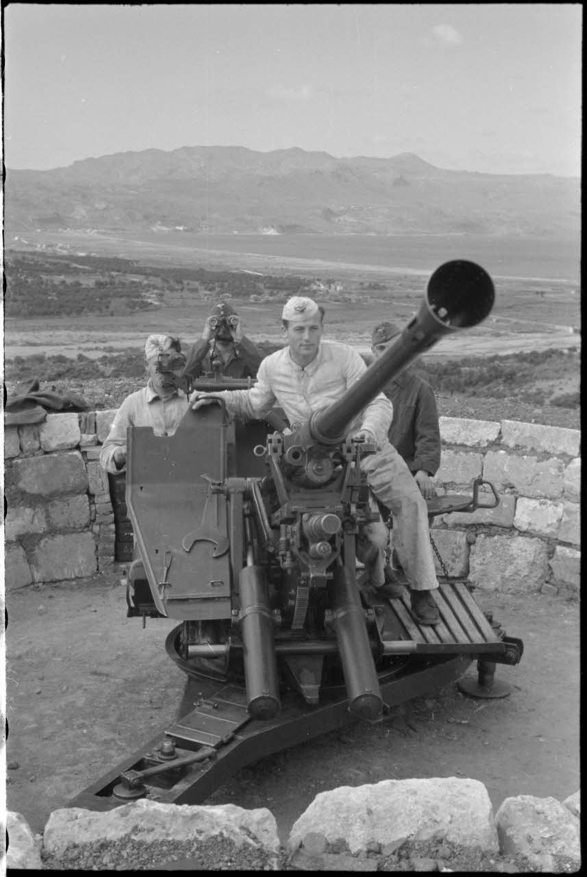En Crète dans le secteur de Maleme, des artilleurs allemands derrière un canon de 3,7 cm FlaK 36. 3