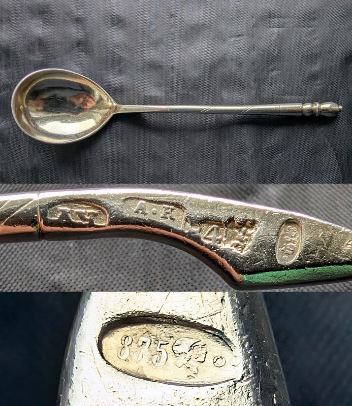 ჭურჭელი კოვზი 24,44 გრ 84 სინჯი 1880 წ მოსკოვის ან თბილისის გადაპრობირებულია თბილისის საიუველირო ქარ