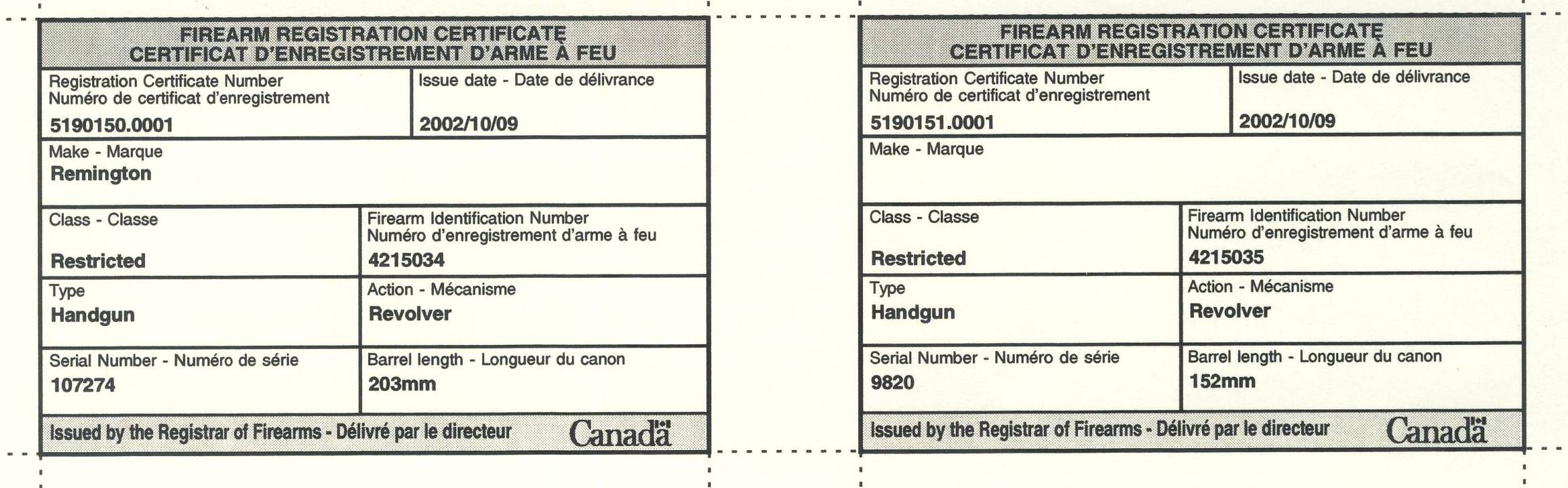 Starr and Remington certificates dated 2002