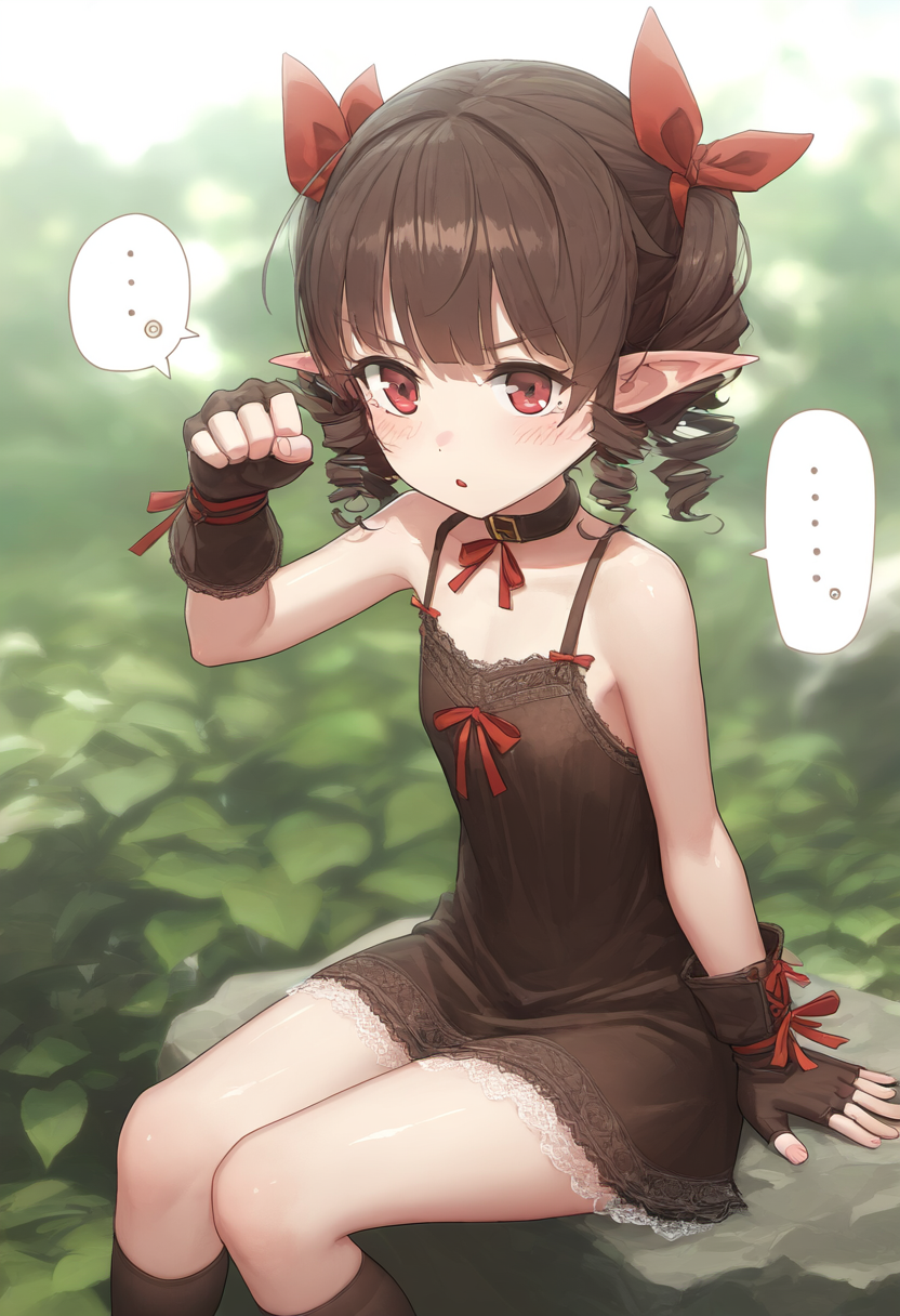 depth of field, 1girl, scenery, portrait, dark elf, pointy ears, red eyes, tarem s-1669886399