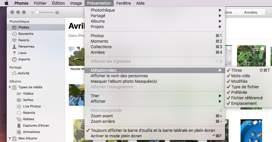 Métadonnées Photos.app
