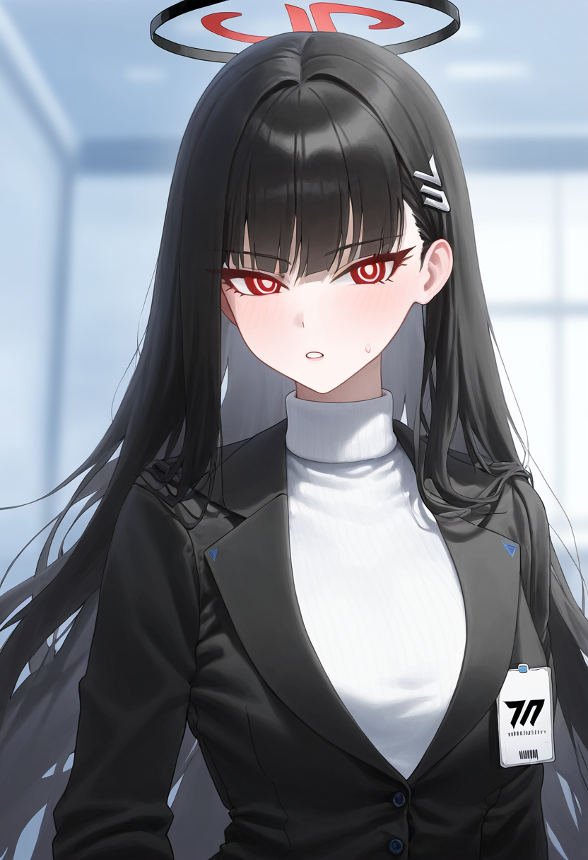 depth of field, 1girl, rio (blue archive), {{flat chest}}, black suit, blue arch s-127480346