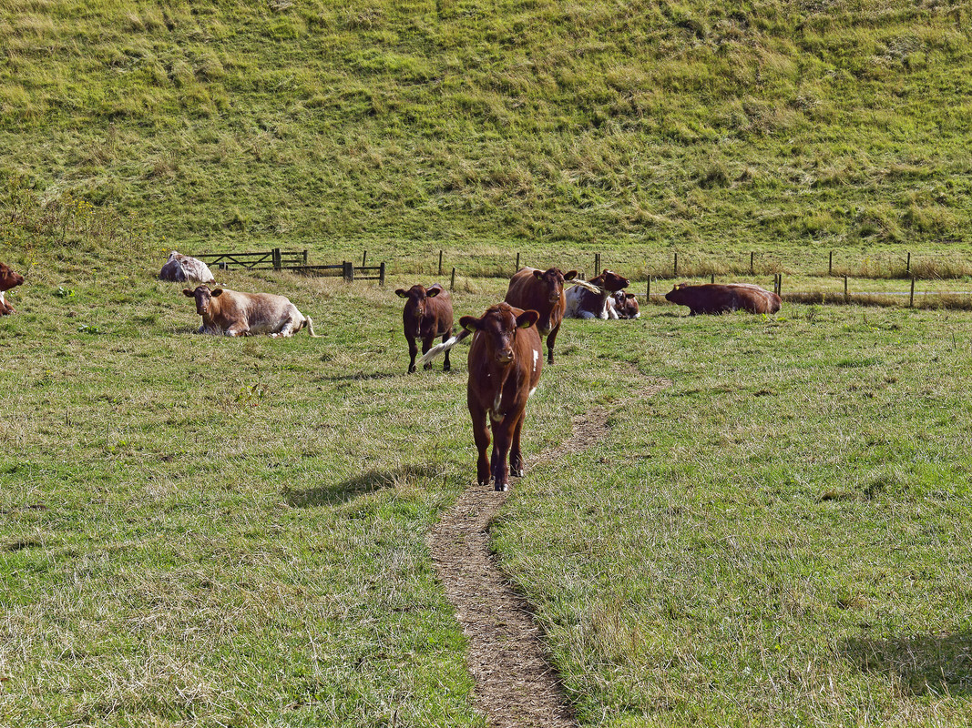 Cows grazing at the end of Scoar Dale