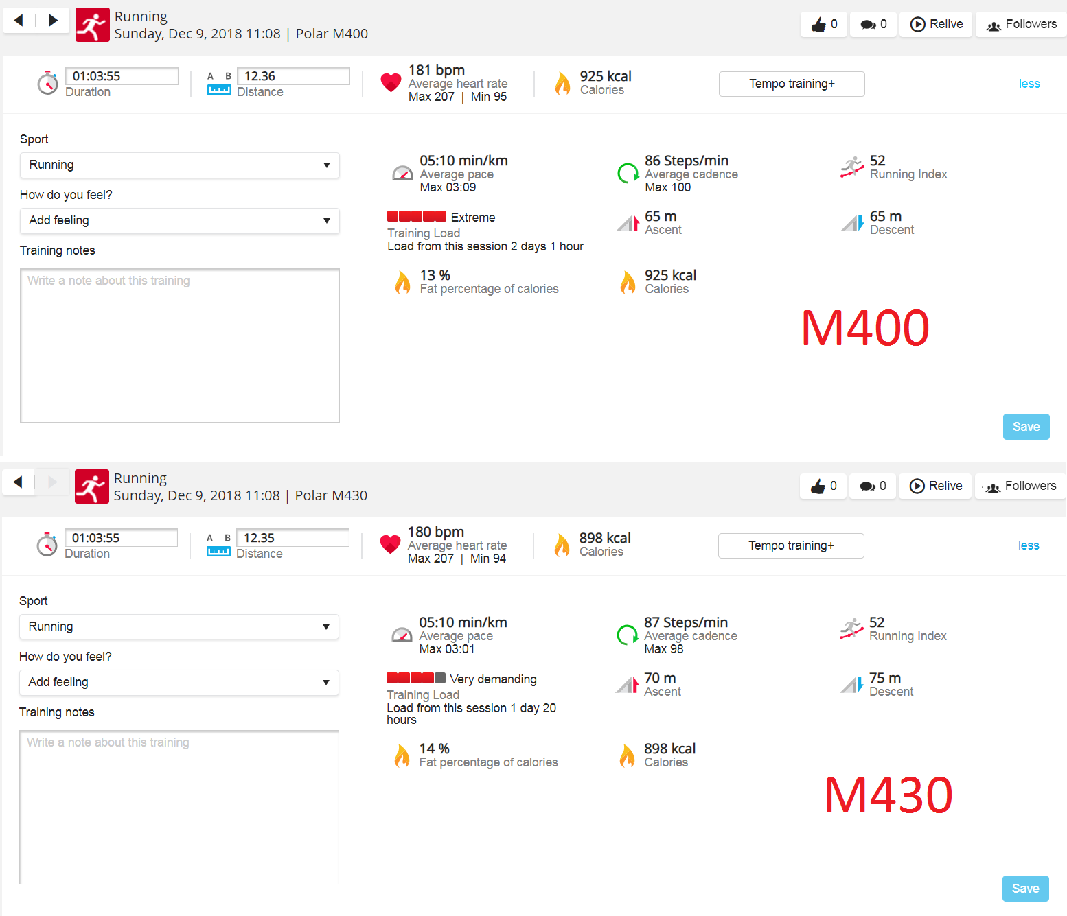 comparison m400 m430 stats