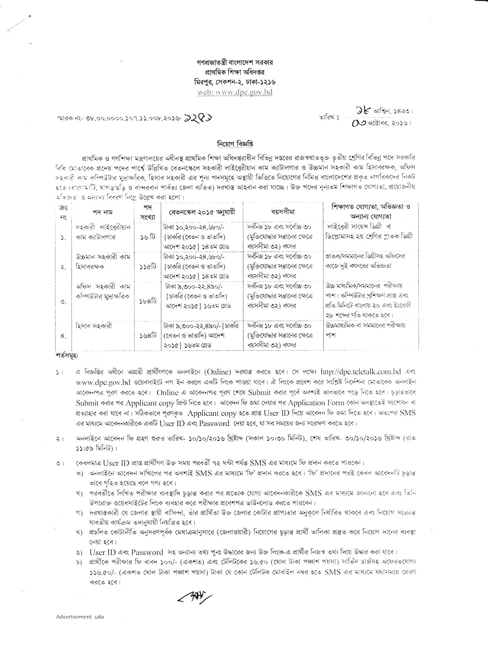DPE Job Circular 2016 PDF 1