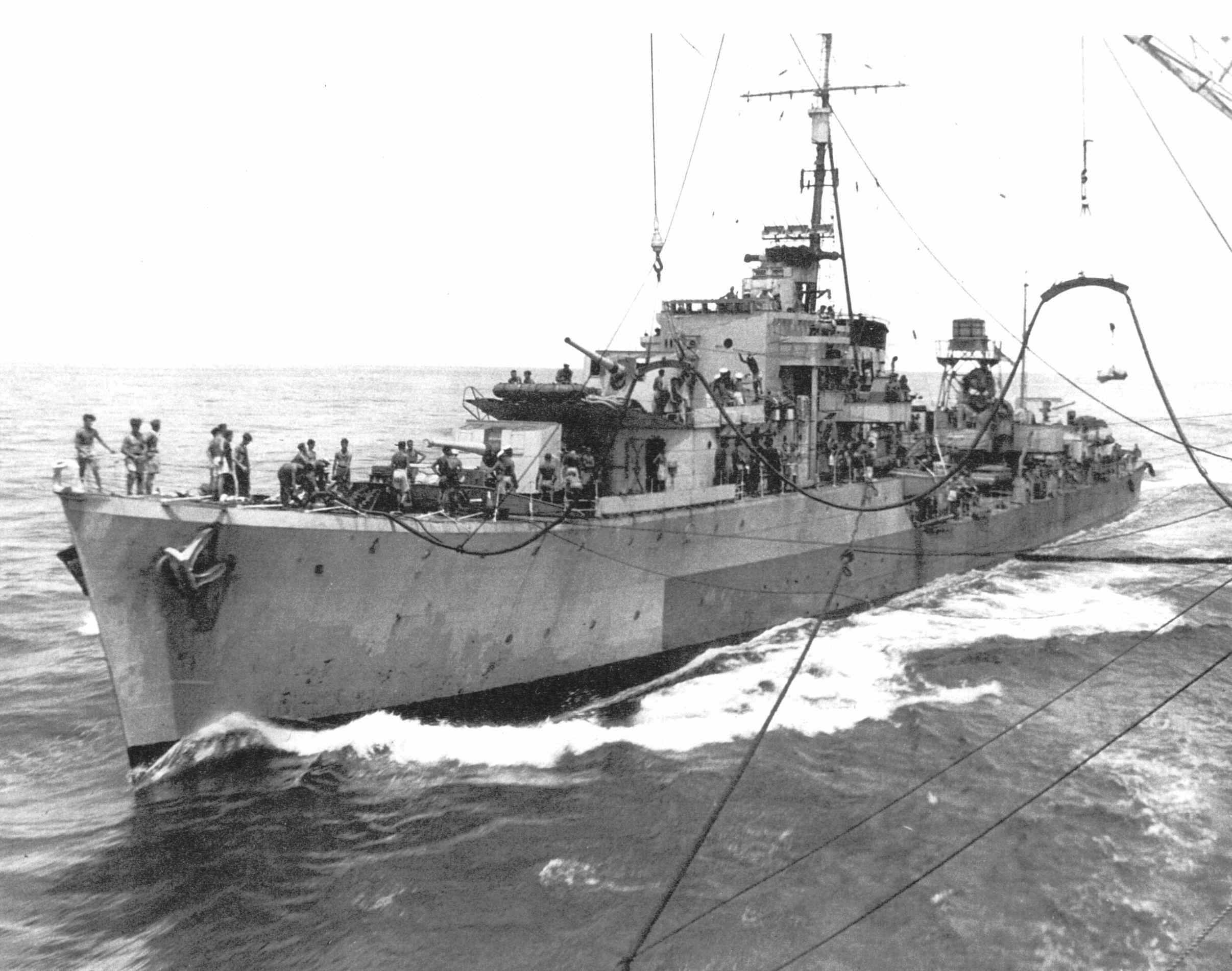 Quadrant (D.17) эаправляется топливом у берегов Японии, июль 1945