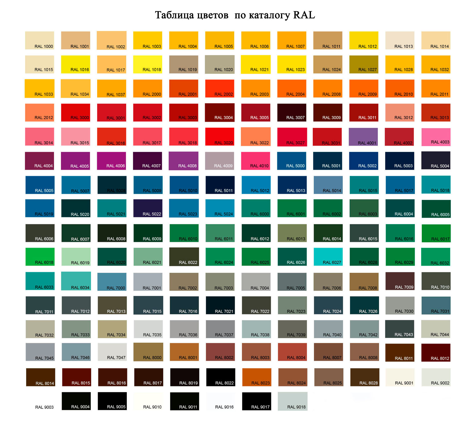 Таблица цветов RAL