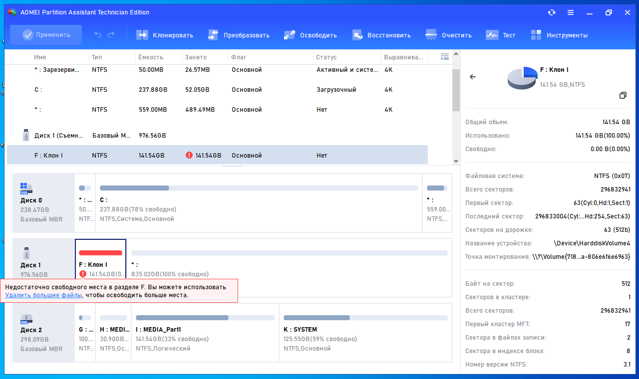 Не могу клонировать раздел2