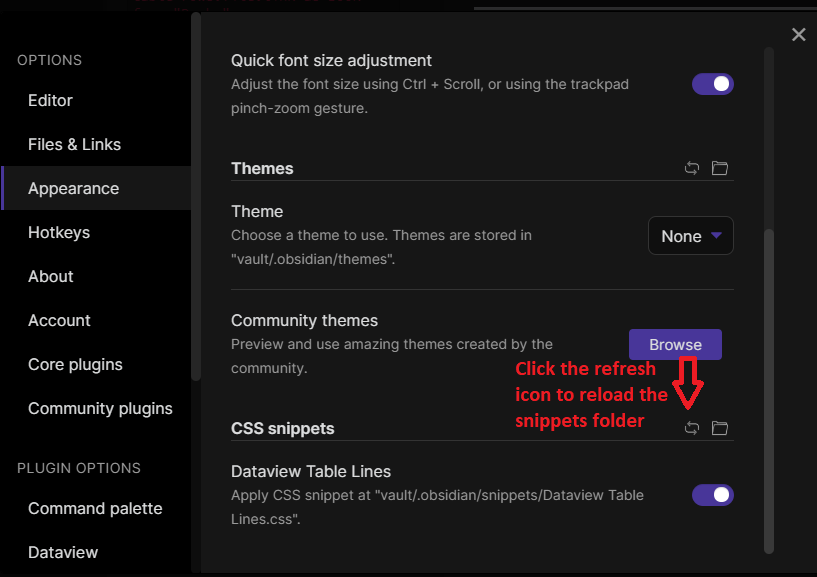 Dataview CSS Snippets Table