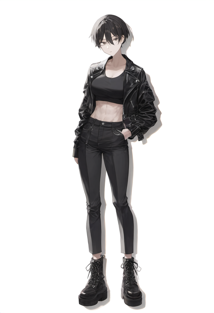 depth of field, 1girl, [[tall]], toned, large breasts, short hair, black hair, b s-2068332255