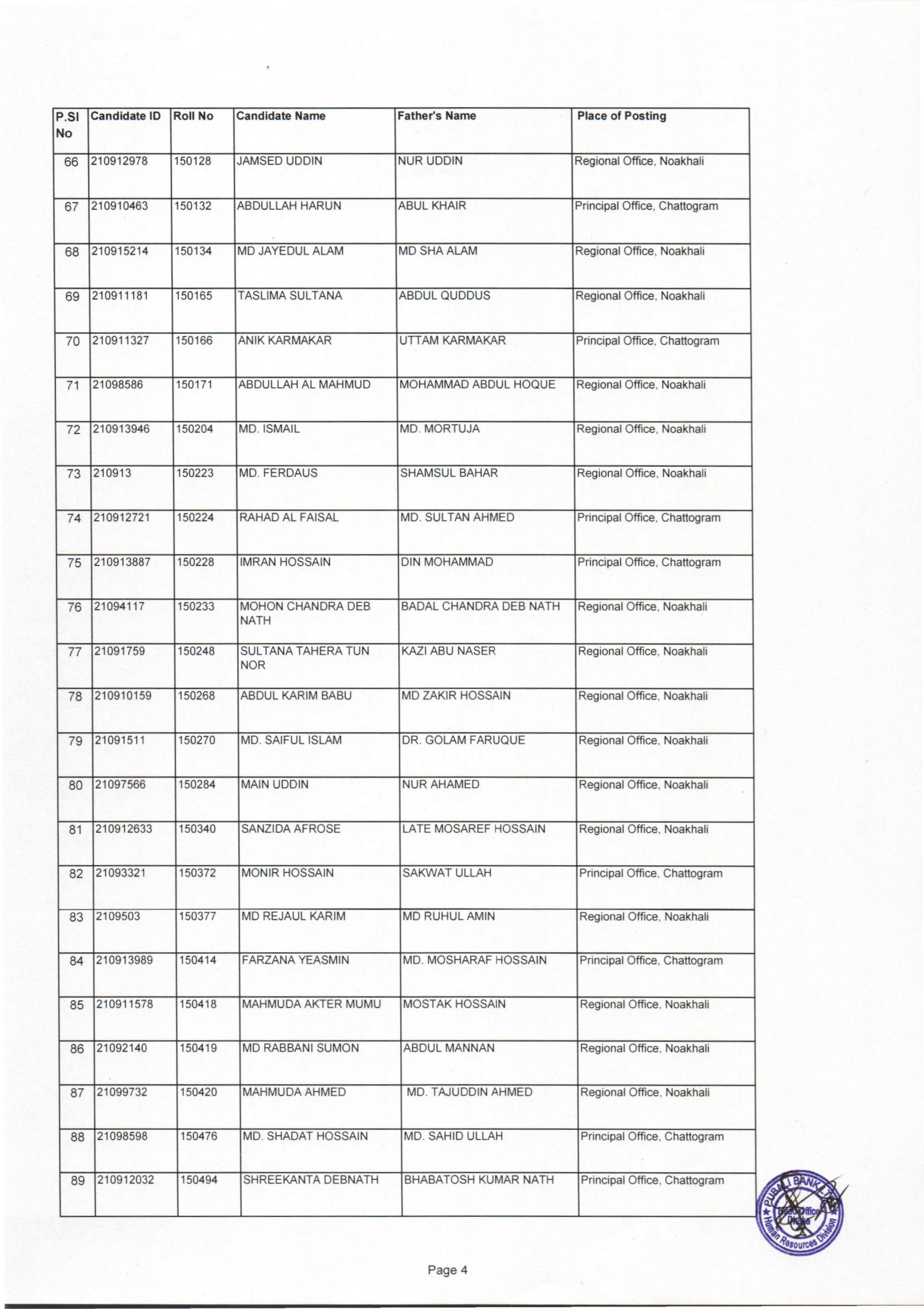Pubali Bank Deputy Junior Officer (Cash) Exam Result From Waiting List 2023 PDF-04