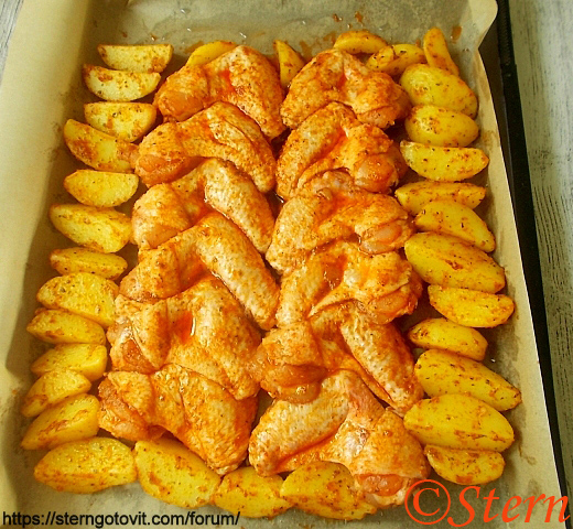 Куриные крылышки в духовке с картошкой