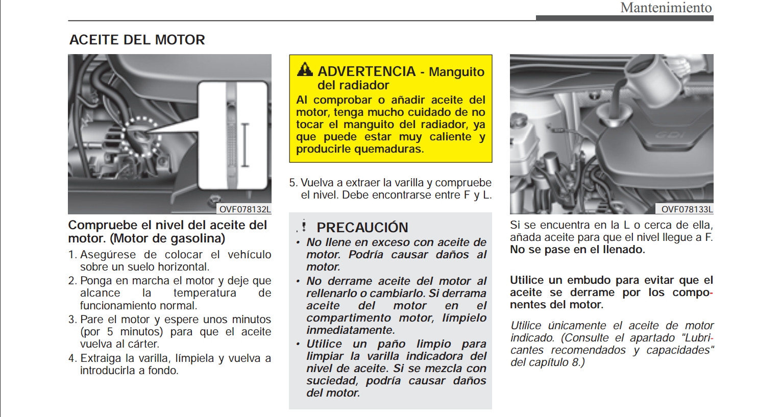 Nivel aceite motor Gasolina