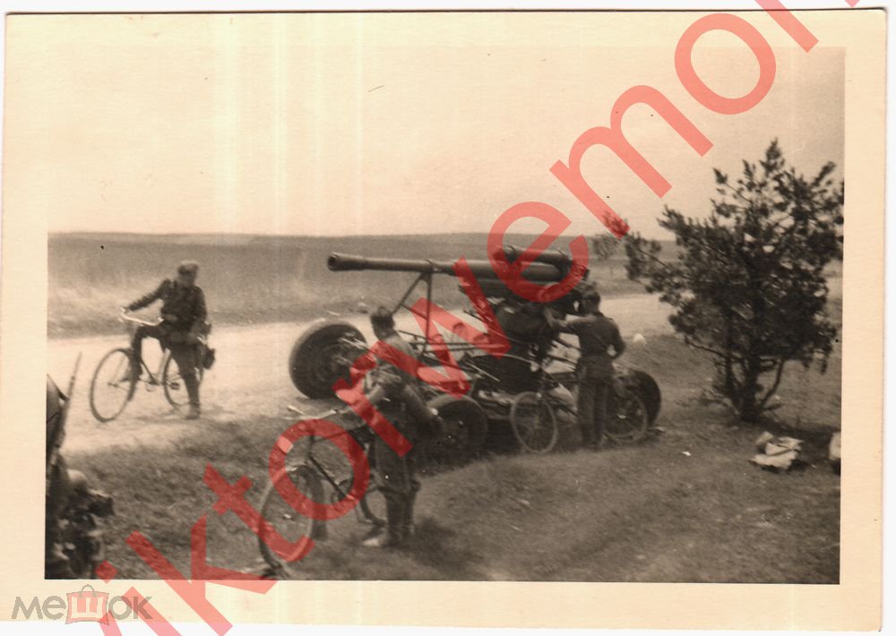 Брошенная советская пушка Зенитка Орудие Немецкий солдат СССР