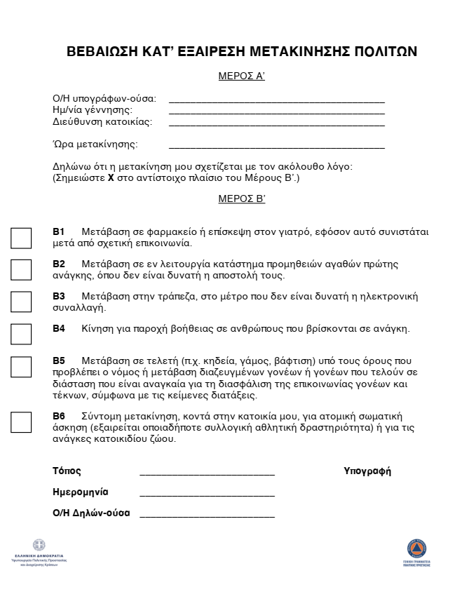 Βεβαίωση μετακίνησης πολιτών
