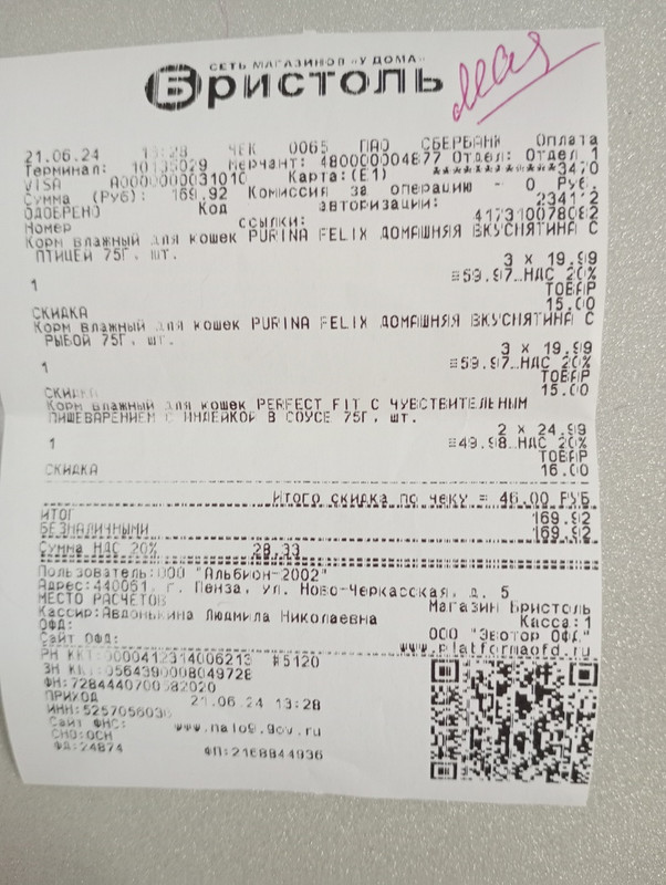 леся чек 21.06.2024 феликс 169,92
