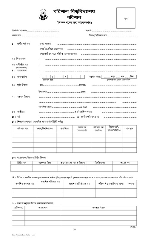 BU Teacher Job Application Form 2024 PDF-1