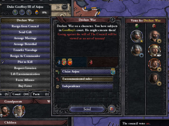 Unable to declare war on Geoffrey