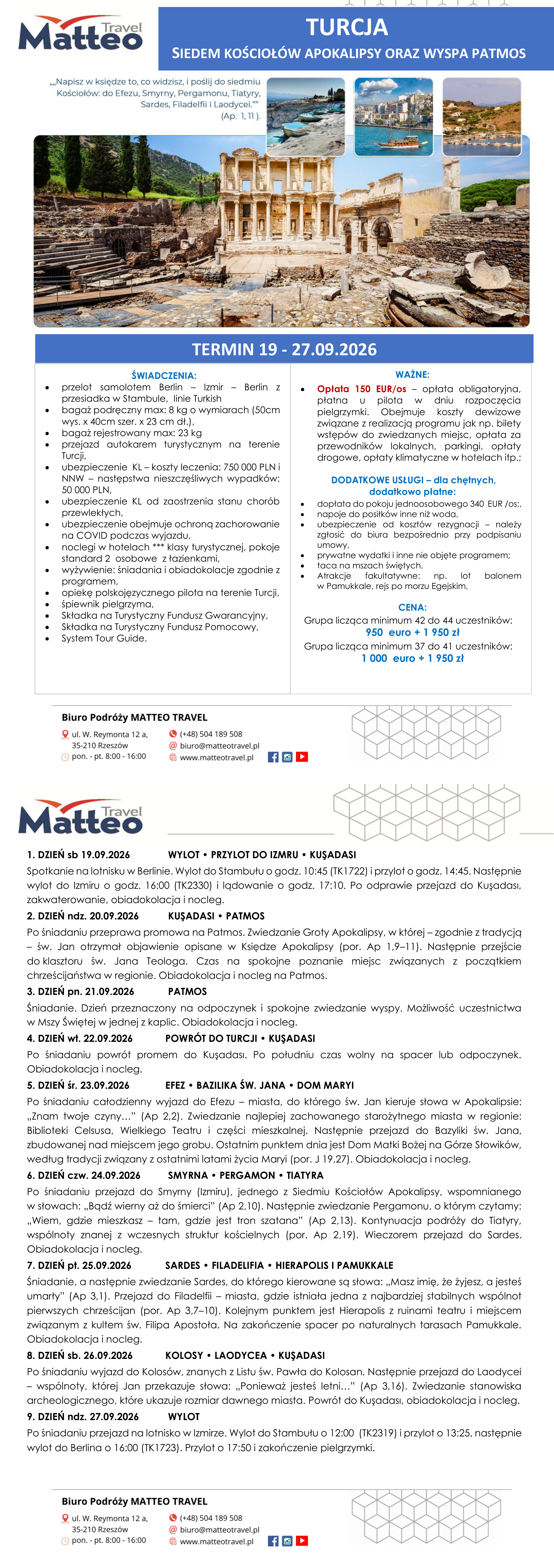 Turcja 7 Kościołów Apokalipsy i Patmos 19 27 09 2026 ks Podeszwa