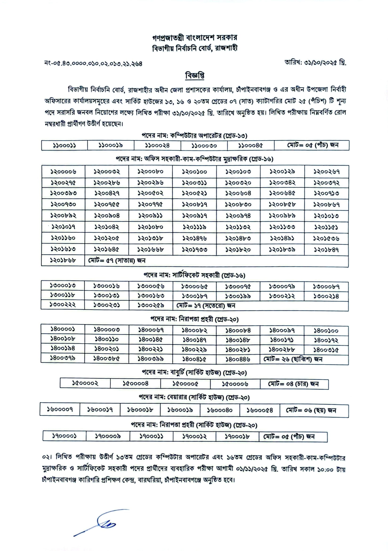 DC Office Chapainawabganj Exam Result 2025 PDF 1