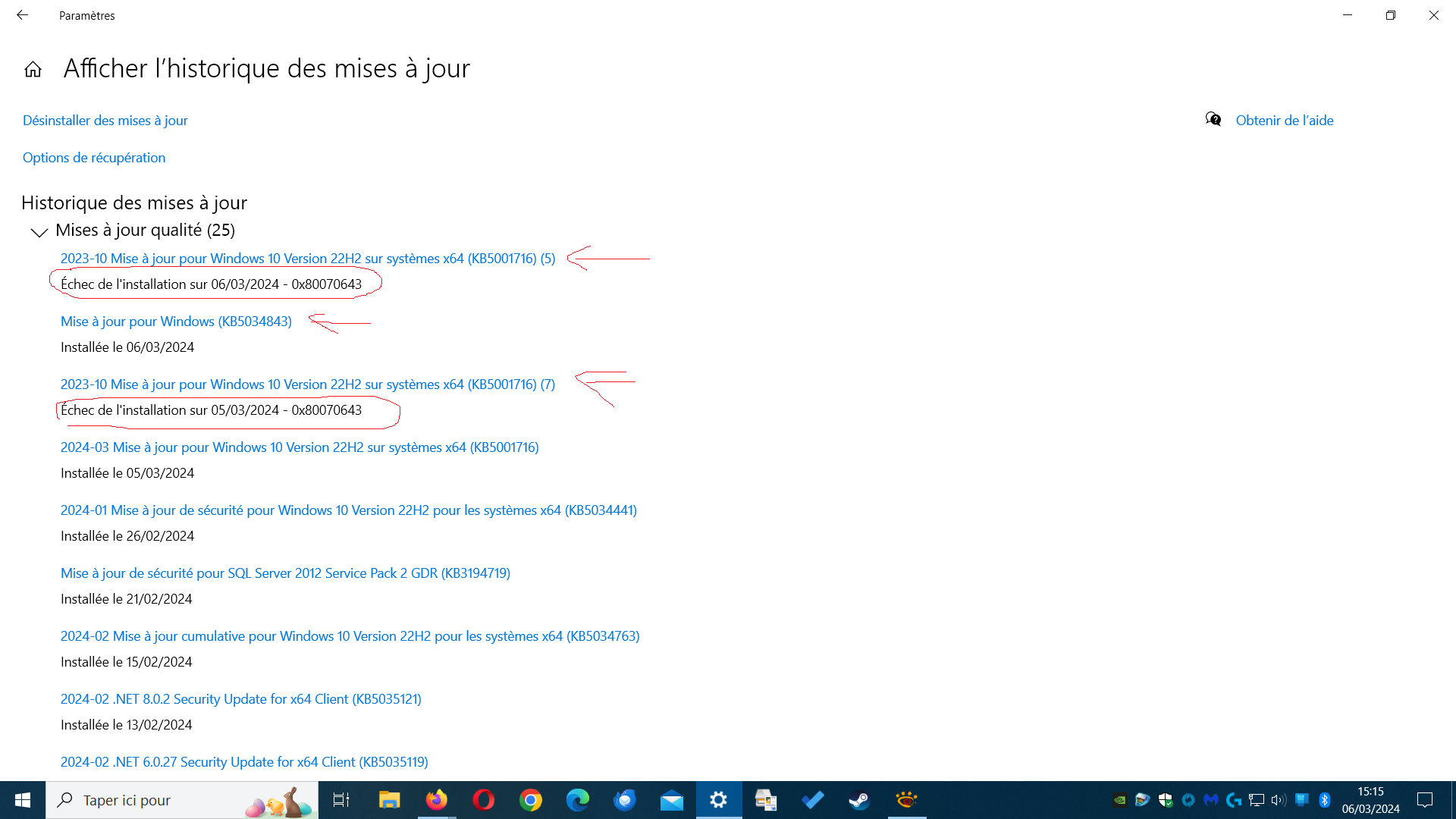 echec apres tentatives au 06 mars 2024
