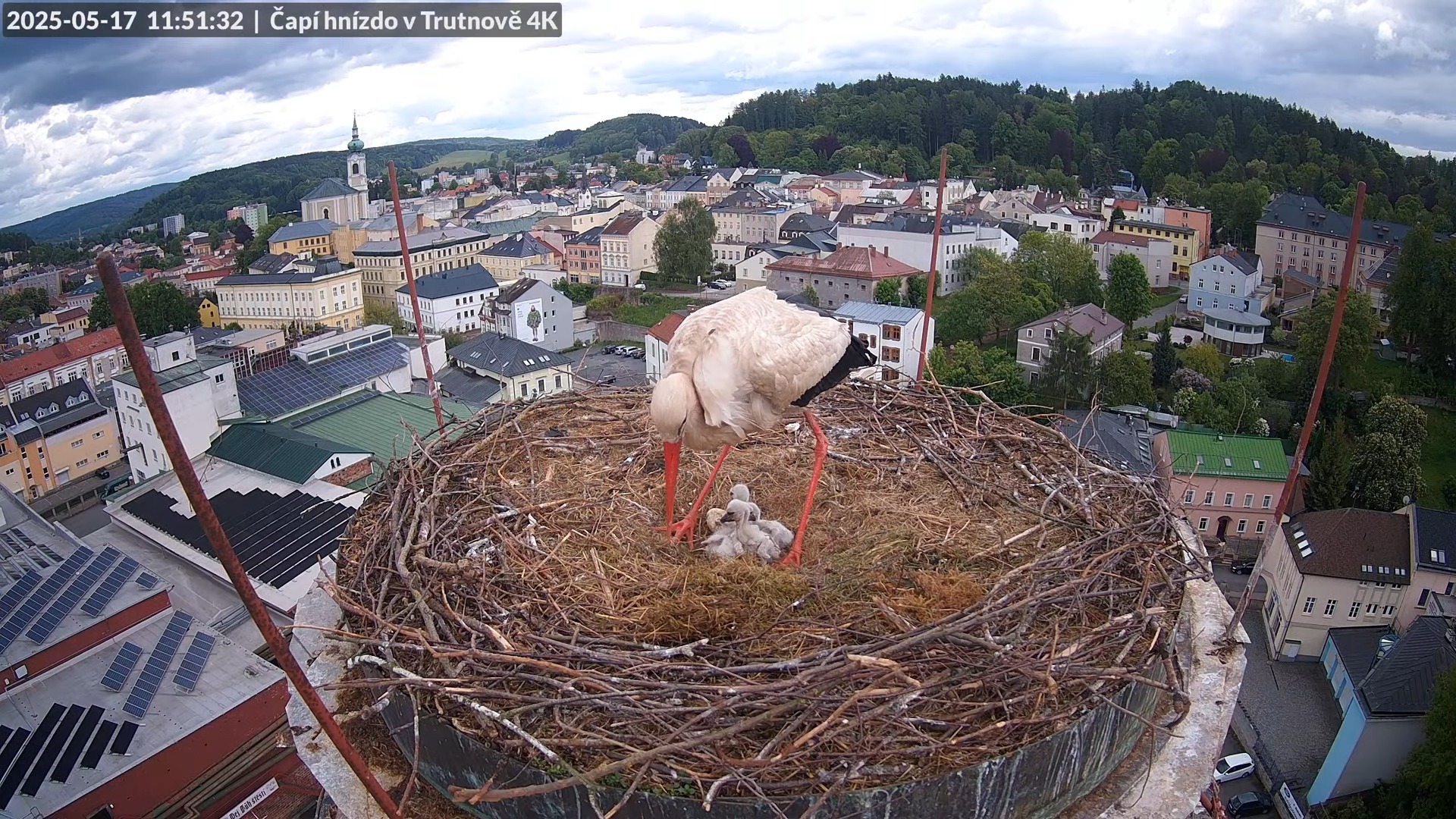 Tiešraide no stārķa ligzdas uz alus darītavas skursteņa Trutnovā 12-57-33 screenshot