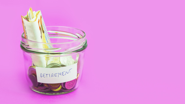 folded-euro-note-coins-retirement-glass-bowl-against-pink-backgr