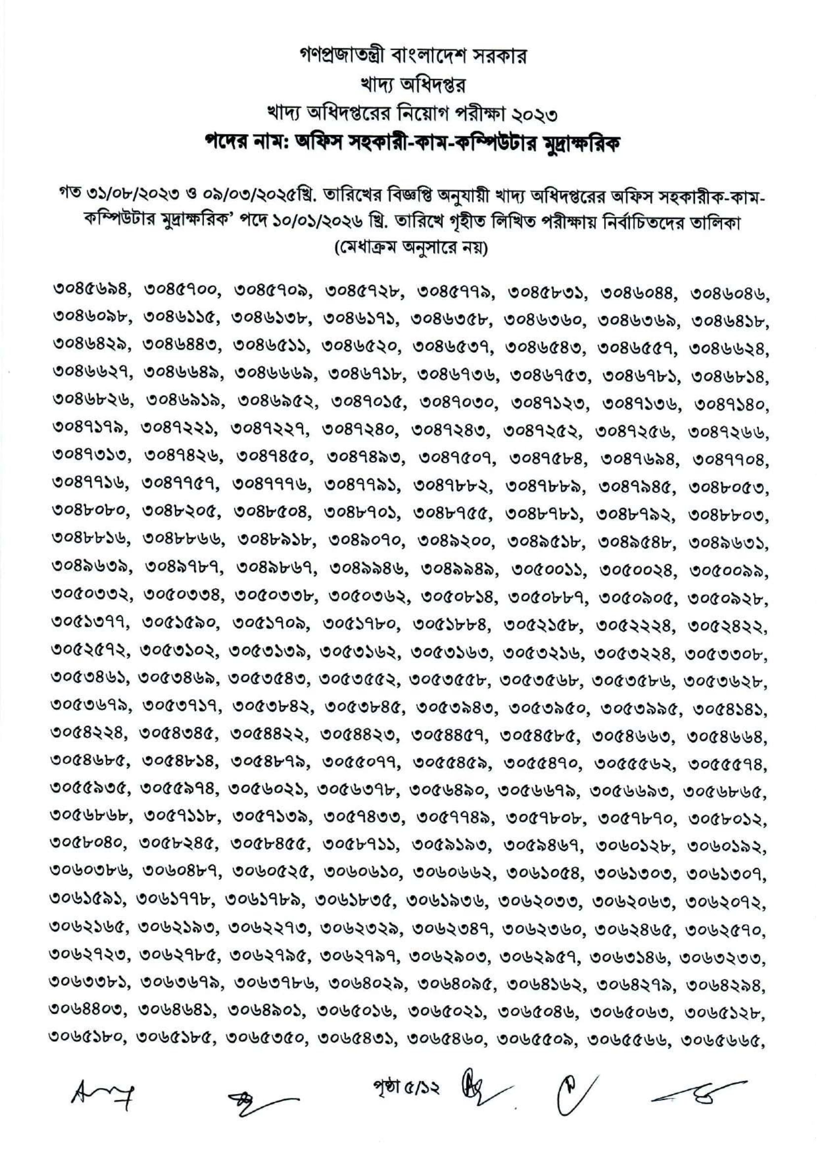 Food Office Assistant Cum Computer Typist Written Exam Result 2026 PDF 07