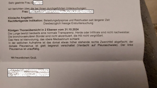 Thorax Röntgenbericht geschwärzt