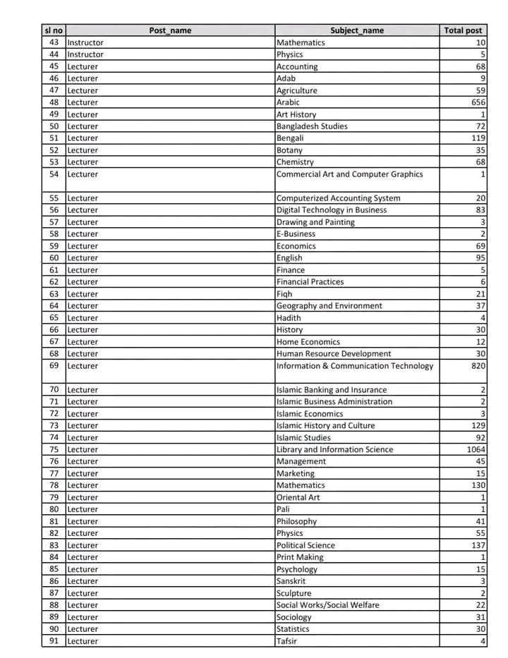 NTRCA Subject Wise Vacancy List 2