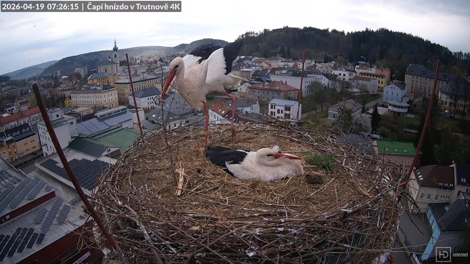 Tiešraide no stārķa ligzdas uz alus darītavas skursteņa Trutnovā 9 32 21 screenshot