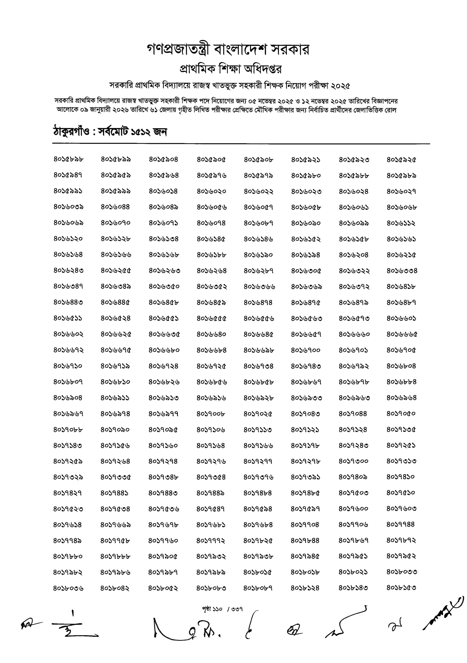 Primary MCQ Exam Result 2026 PDF 112