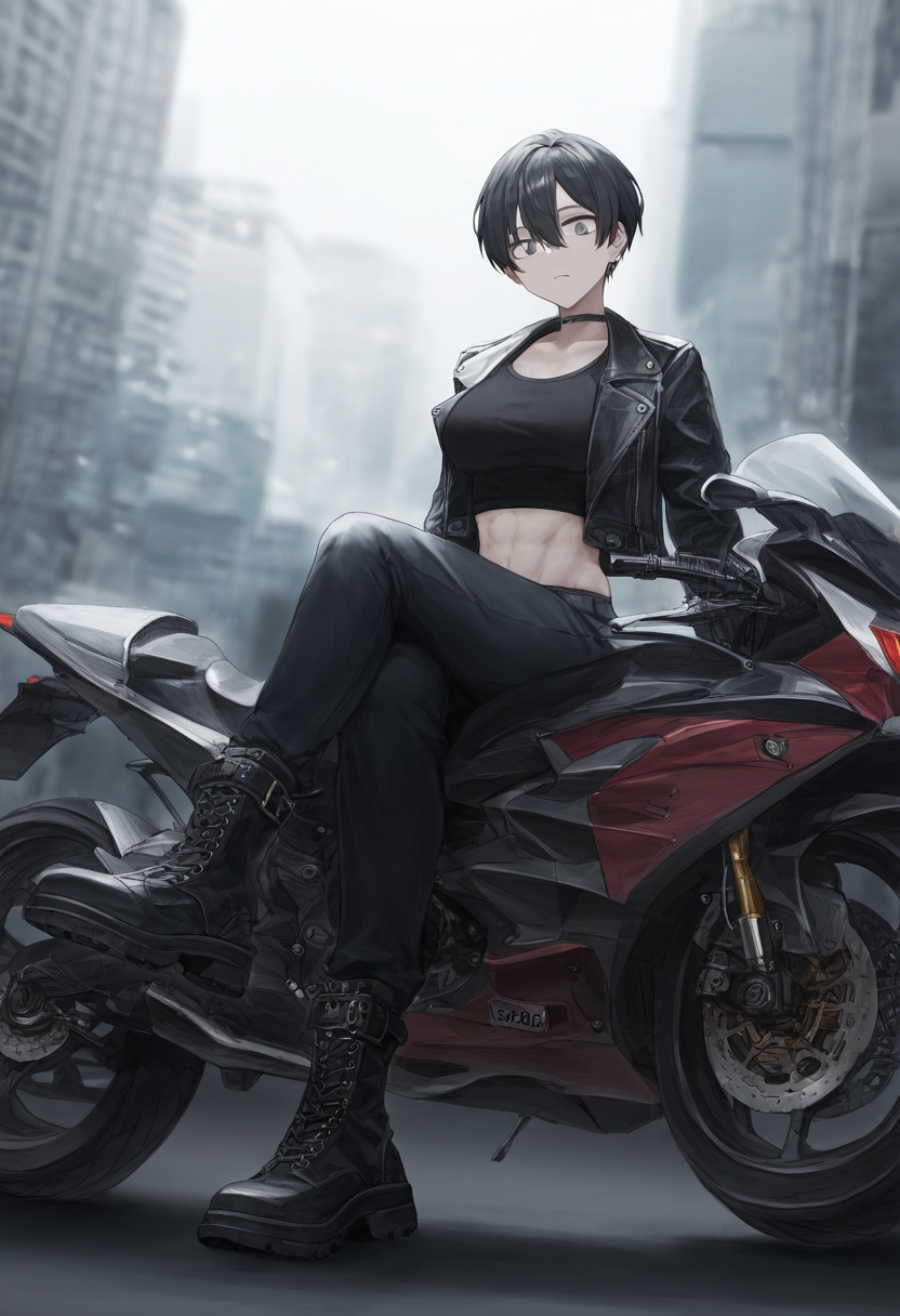 depth of field, 1girl, [[tall]], [toned], large breasts, short hair, black hair, s-3150327158