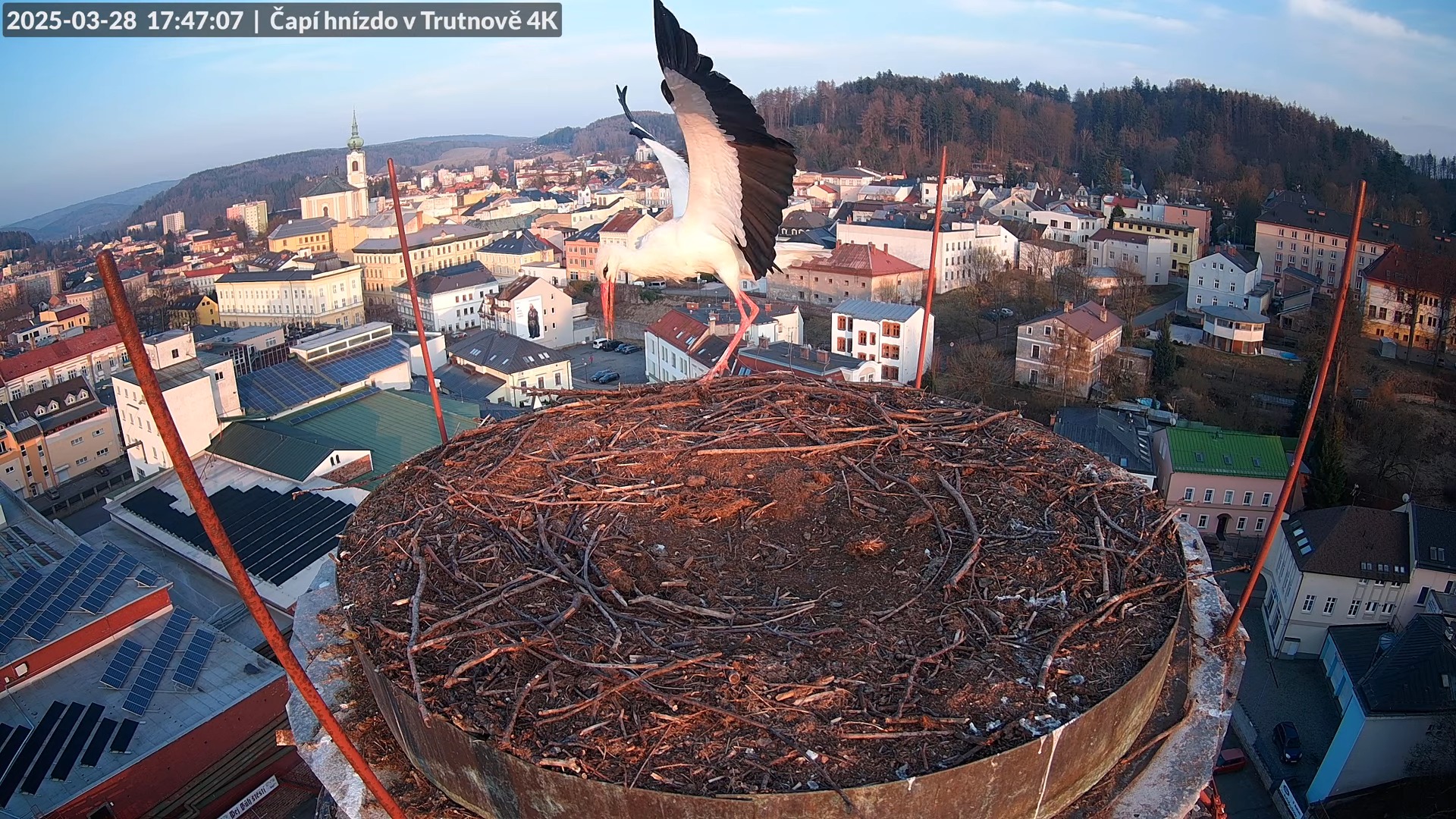 Tiešraidē no stārķa ligzdas uz alus darītavas skursteņa Trutnovā 15-9-57 screenshot (1)