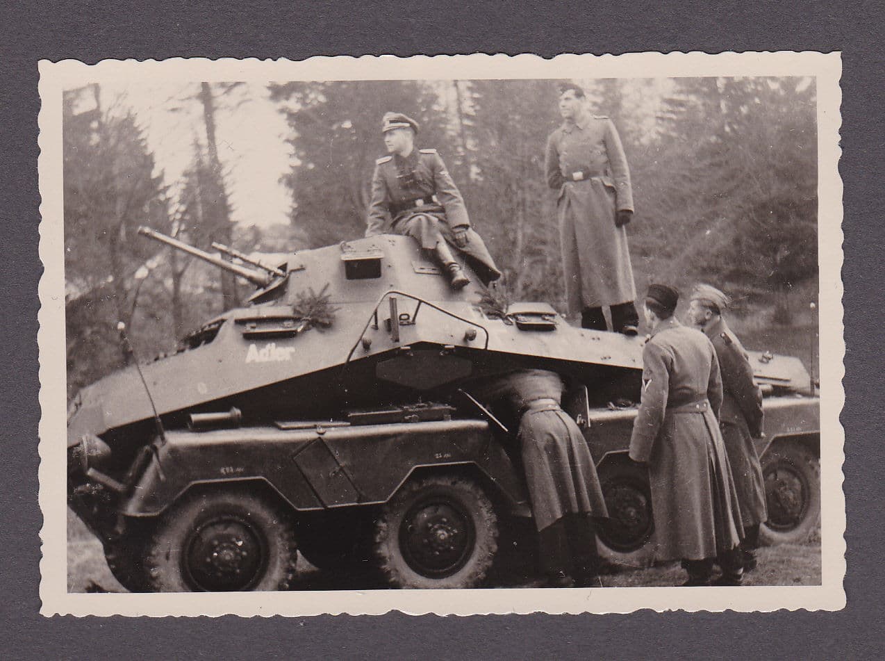 Foto 2.WK.Kameraden mit Panzerspähwagen Sd.Kfz.