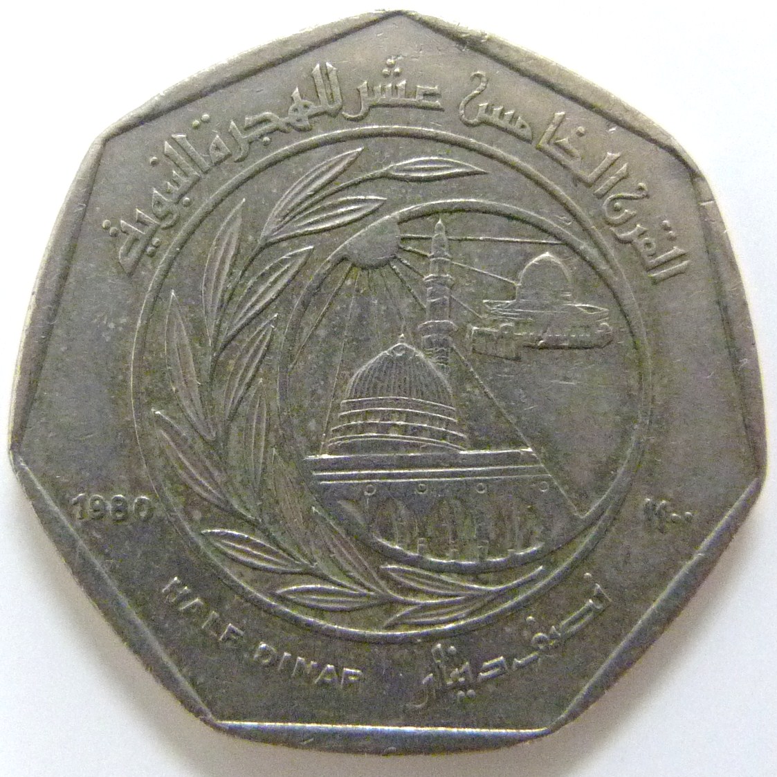 JOR. 0,5 Dinar (1980, 1400 Aniversario Hegira) - rev