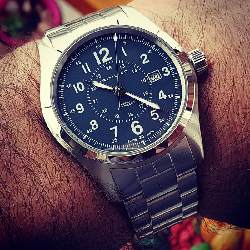Hamilton Khaki Field Auto 42 mm 100M Blue Dial Bracelet #H70605143