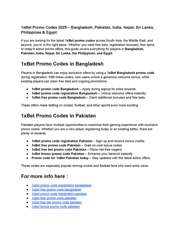 1xBet Promo Codes 2025 – Bangladesh, Pakistan, India, Nepal, Sri Lanka, Philippines & Egypt