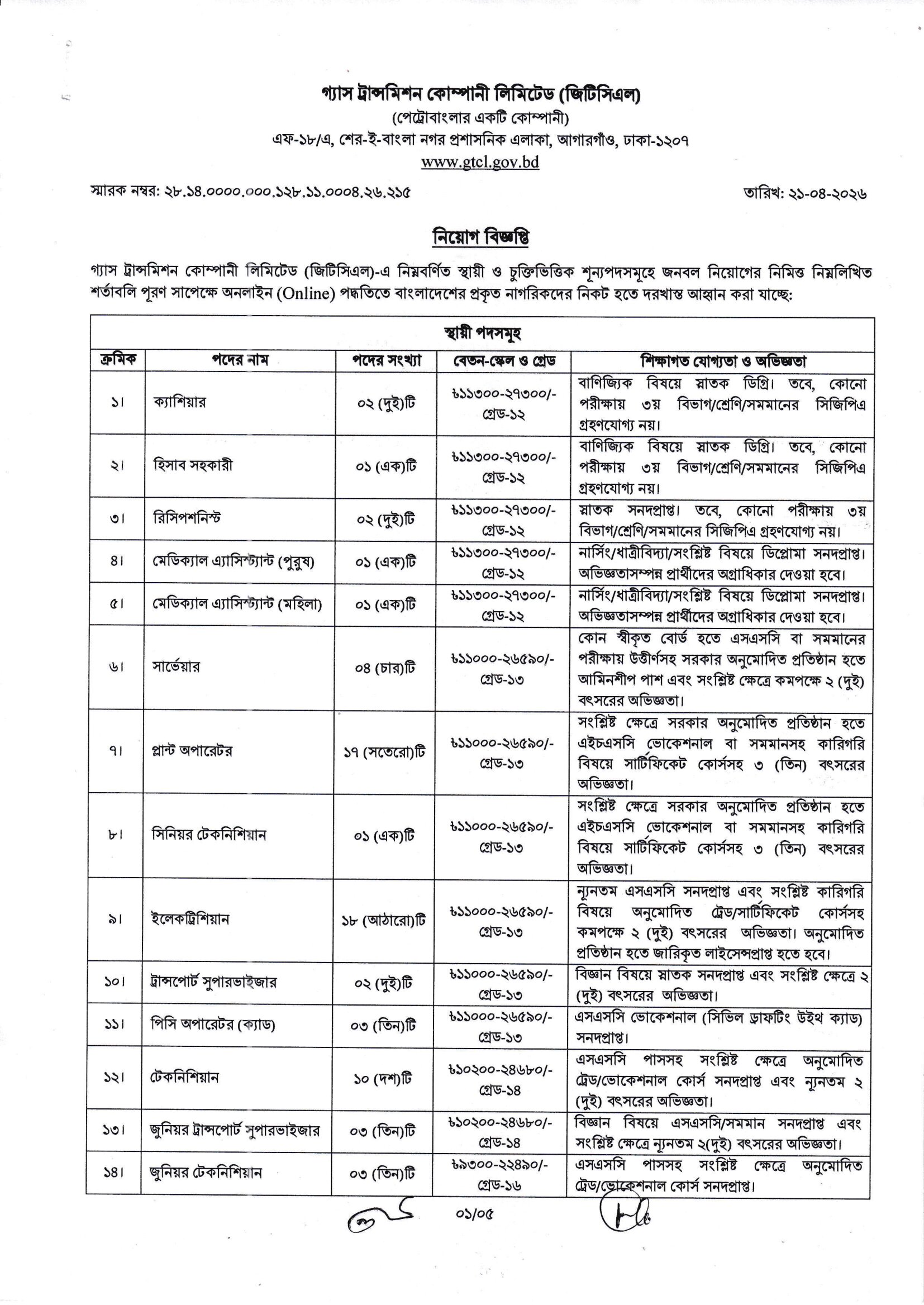 GTCL Job Circular 2026 PDF 1
