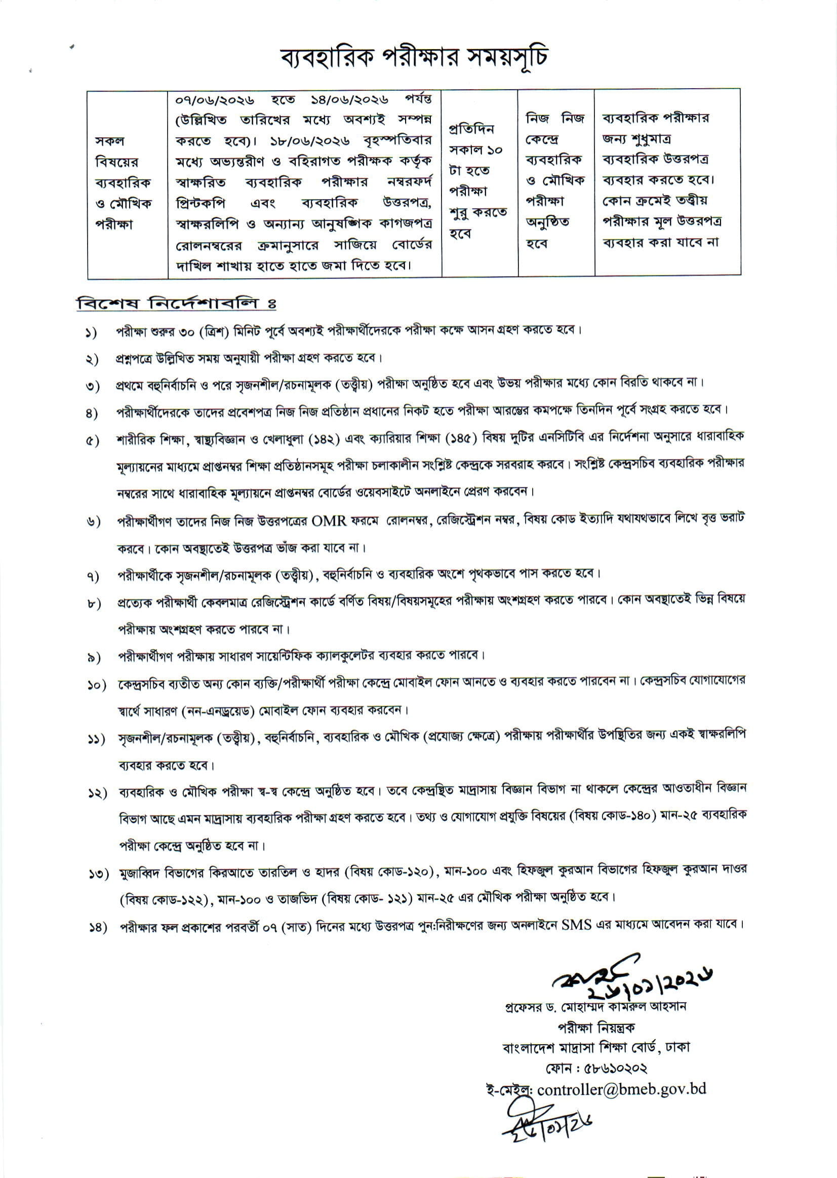 Dakhil Exam Routine 2026 PDF 2