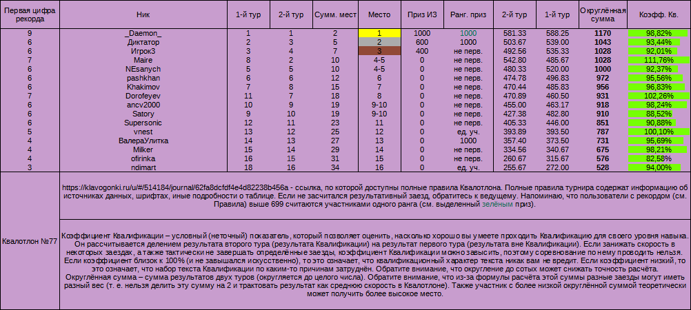 77-й Квалотлон, итоги