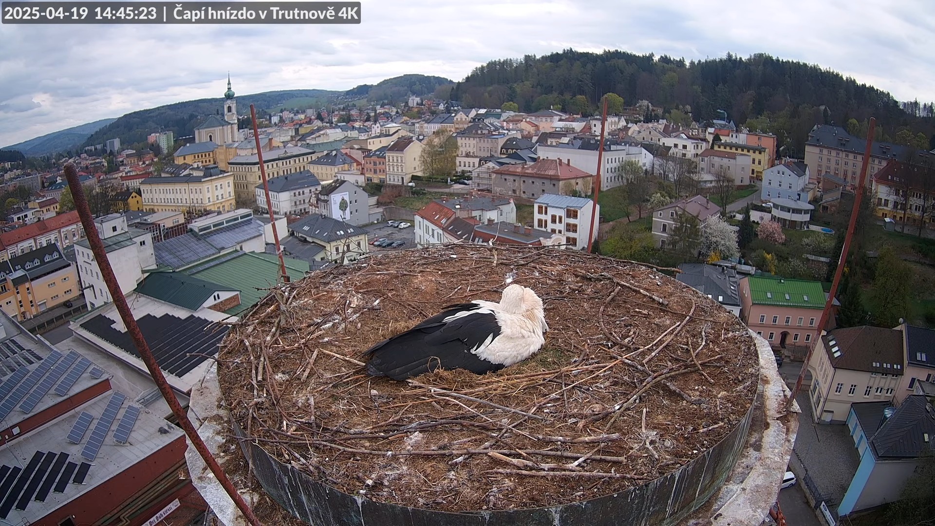 Tiešraidē no stārķa ligzdas uz alus darītavas skursteņa Trutnovā 18-29-45 screenshot