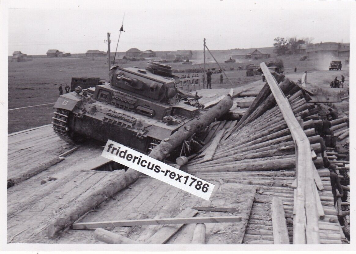 Foto WH Panzer Tank PzKpfw III Combat Unfall Kennung G Holzbrücke eingestürzt