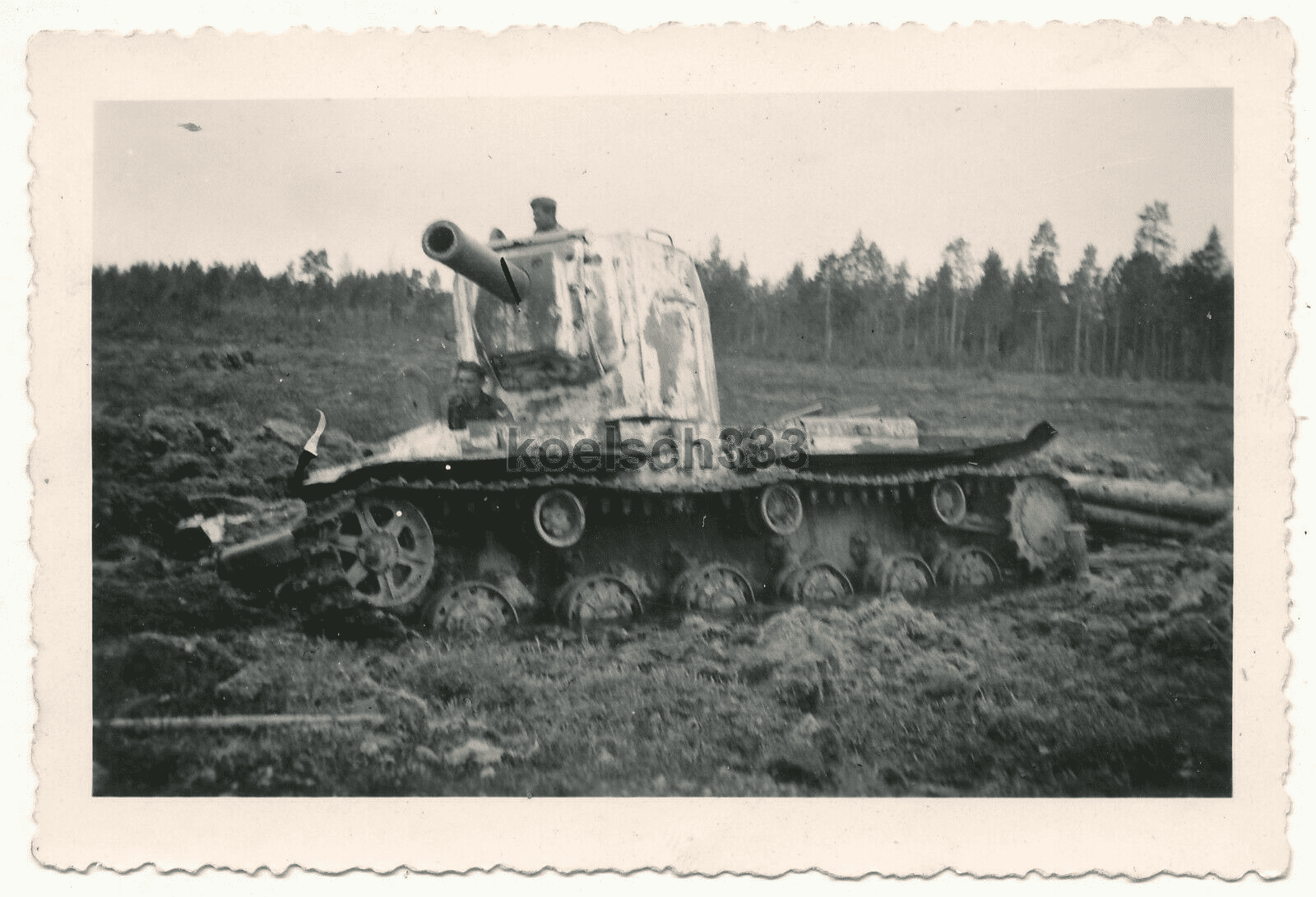 Foto Novaya Maluska russischer KW II Panzer mit Wehrmacht Beute Balkenkreuz (3)