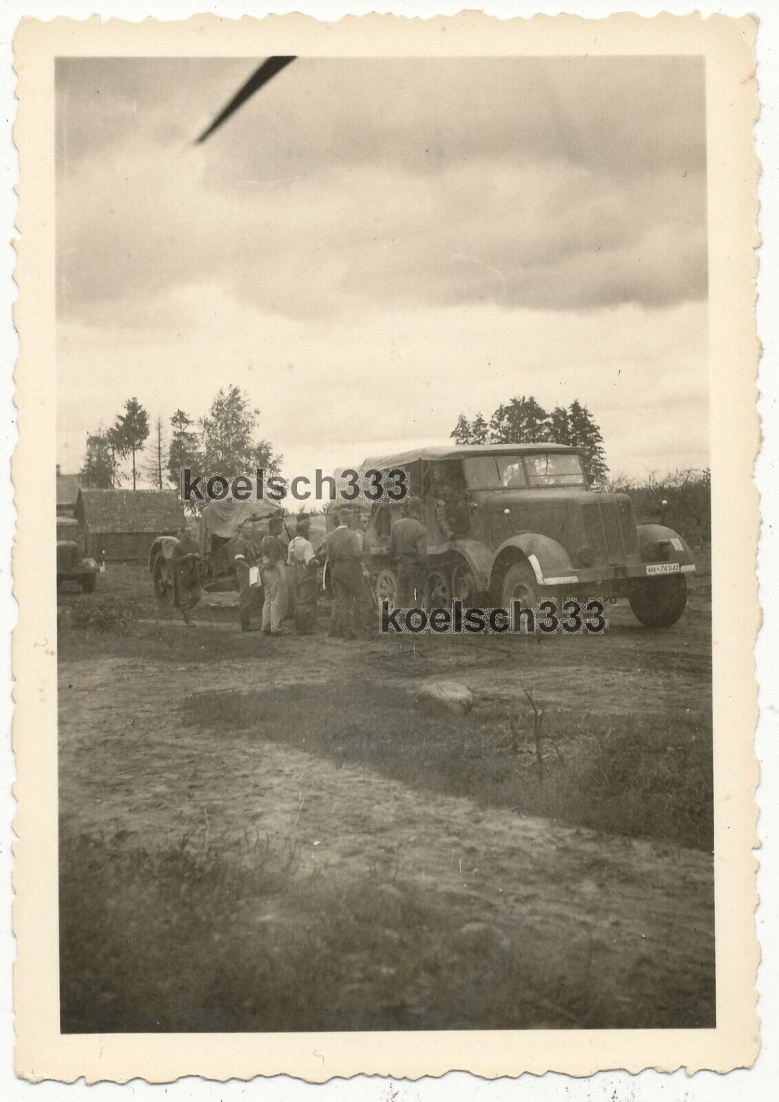 Foto Panzer Halbkette schleppt 21cm Mörser Artillerie Geschütz im Osten 1941