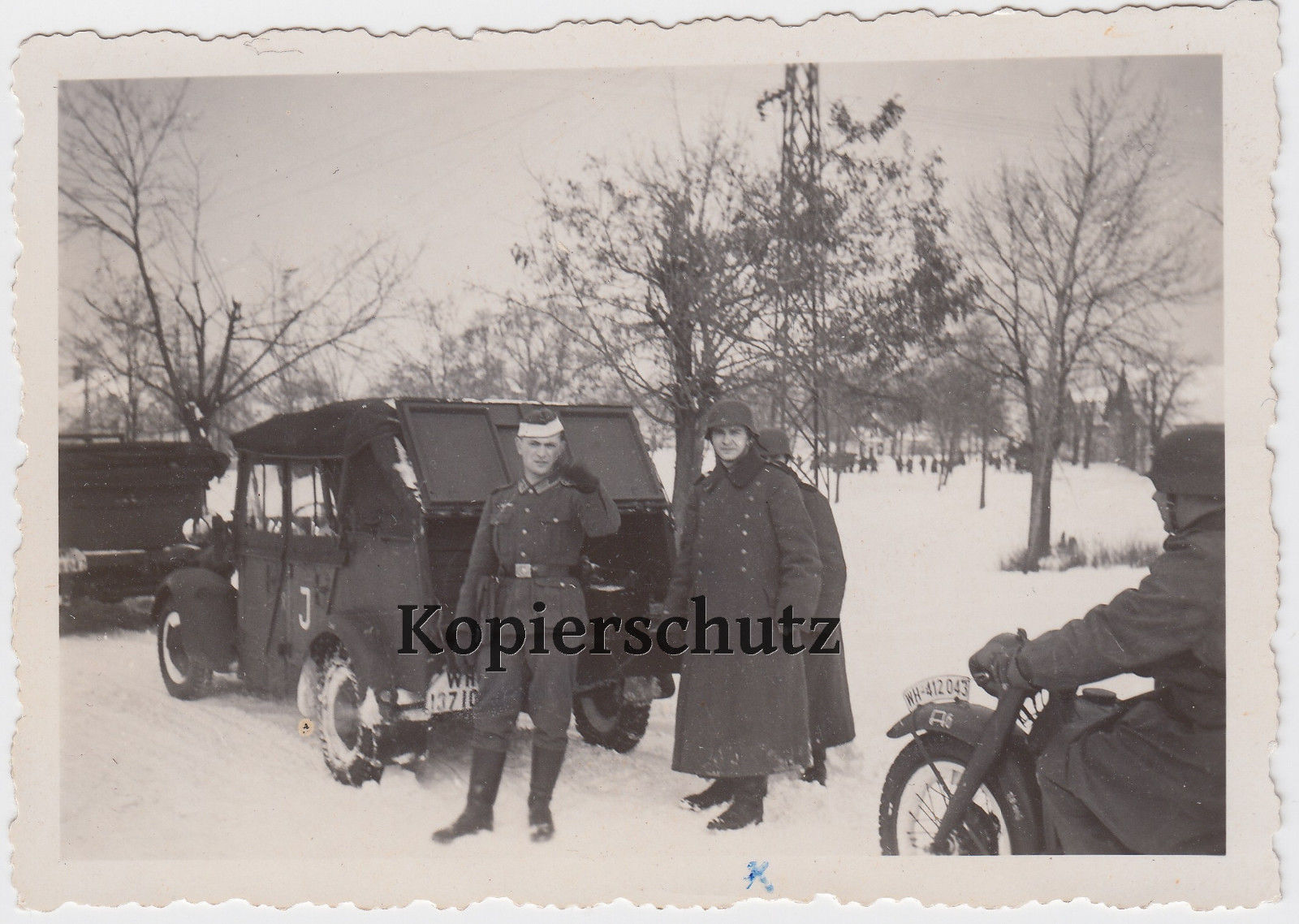 Foto Wehrmacht Soldaten mit Kübelwagen mit Kennung J Krad Motorr