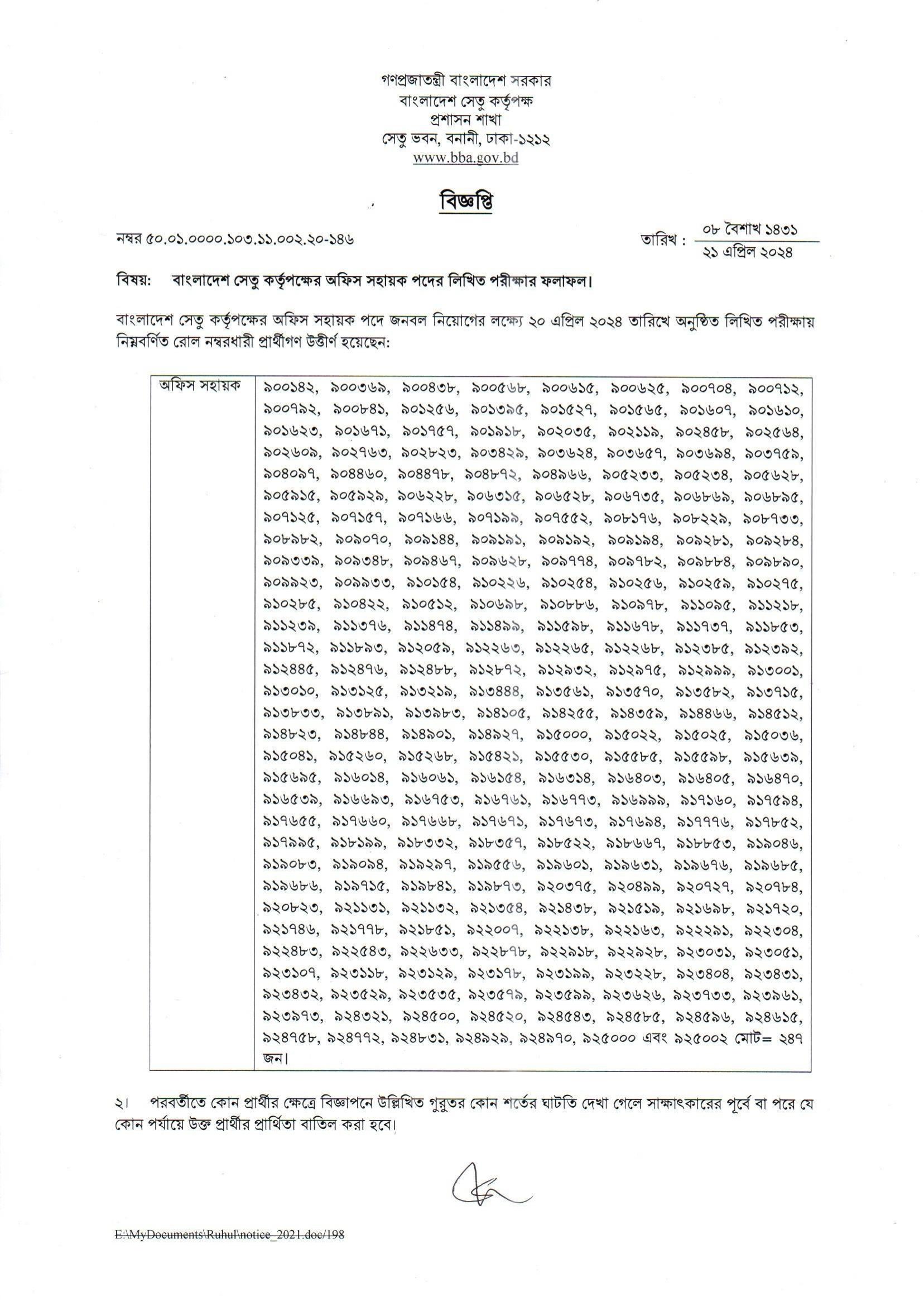 Bangladesh Bridge Authority (BBA) Exam Result 2024 PDF-1