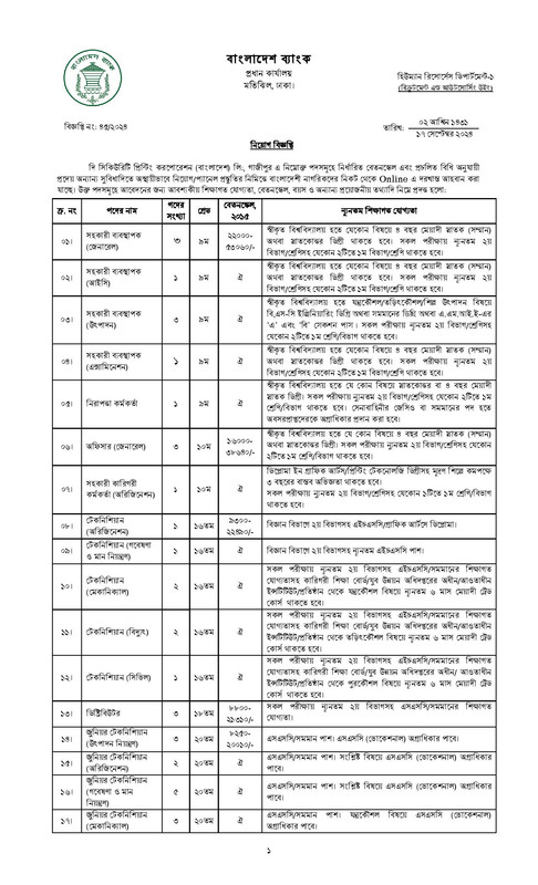 বাংলাদেশ ব্যাংক নিয়োগ বিজ্ঞপ্তি ২০২৪-1