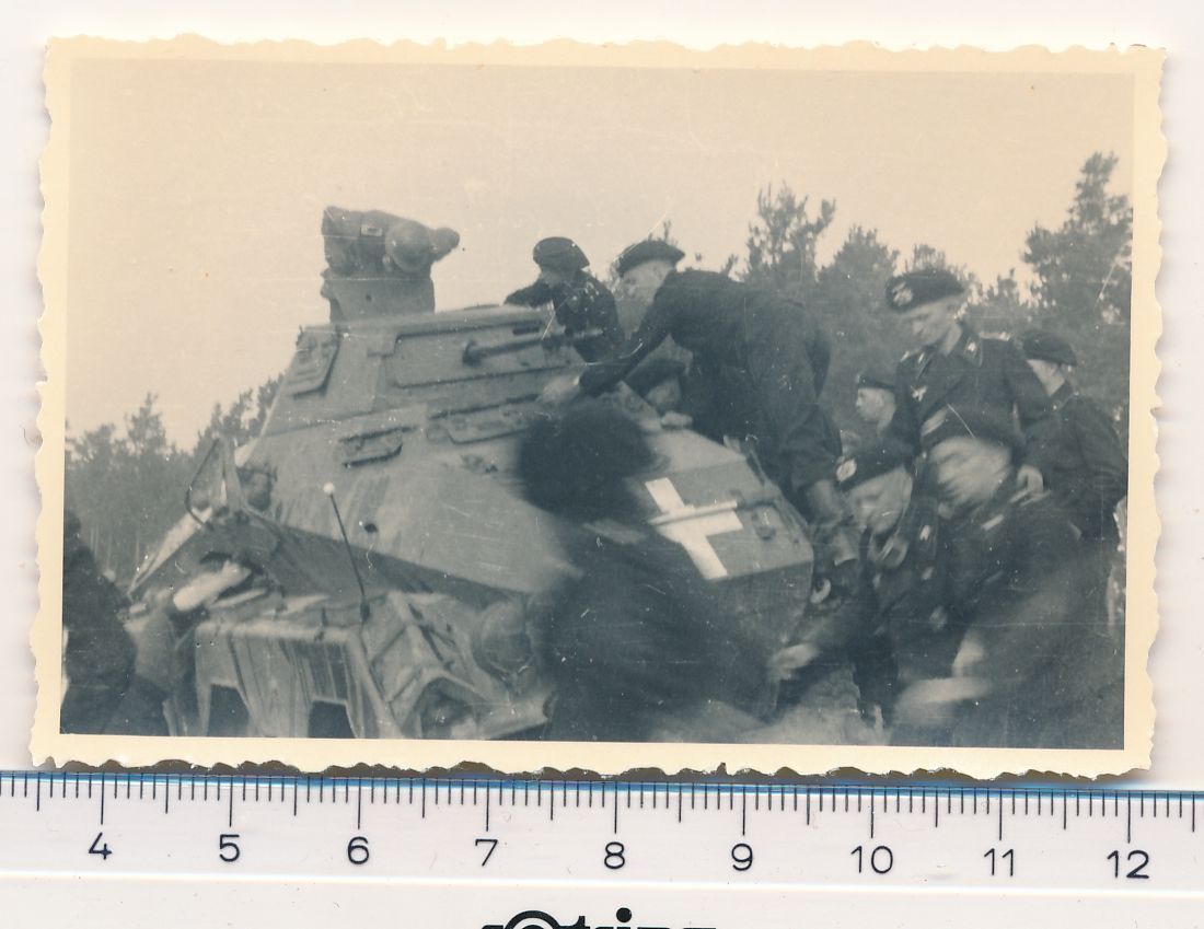 SUPER FOTO 2.WK Panzersoldaten mit Spähwagen